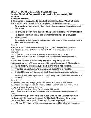 Test Bank Chapter 04 The Complete Health History Chapter 04 The Complete Health History Jarvis Studocu